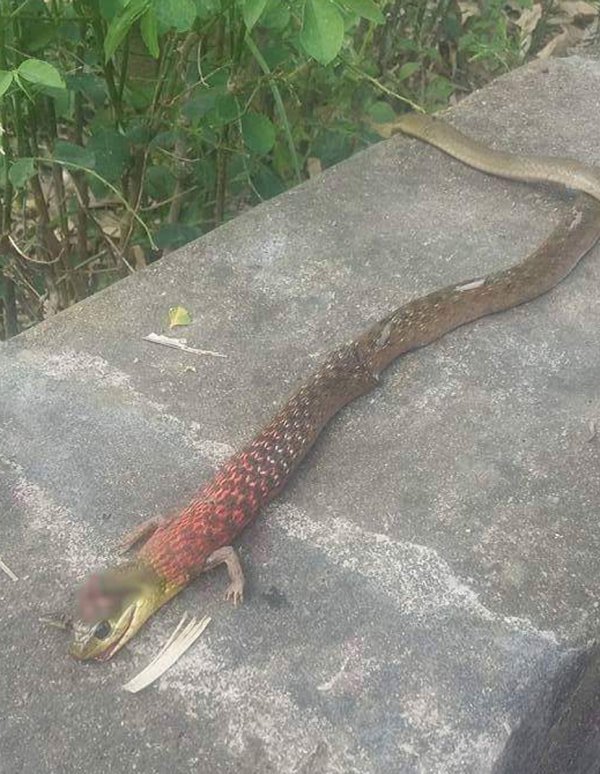 Tijelo gmizavca je dugo i podsjeća na zmiju, ali, glava i nožice upućuju da se radi o gušteru. Nije poznato o čemu je riječ. Pogledajte i sami.